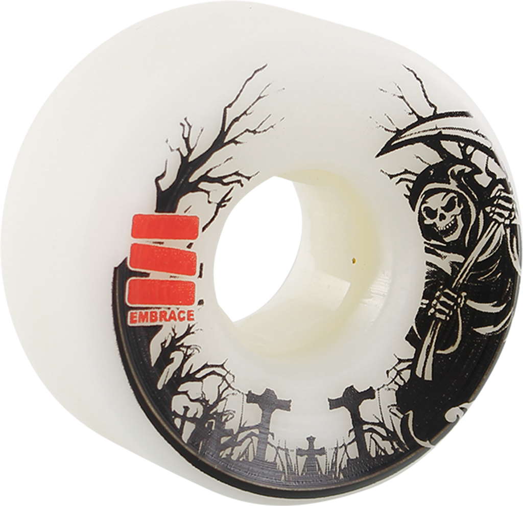 THE EMBRACE REAPER 54mm 101a WHT/RED WHEELS SET is a versatile wheel in the skatepark or all around town.